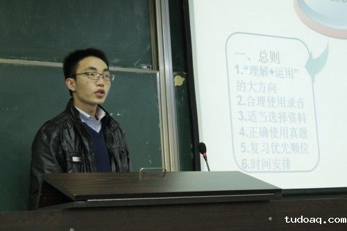 第三个环节是司考高分同学的经验分享。法硕1201班的张淼晶同学和法硕1202班的王鹏鹤同学分别向大家展示了他们顺利突破400分的备战历程。他们各自独特的学习方法和惊人的学习耐力都给同学们留下了深刻的印象,并激起了大家努力和奋发挑战高分的决心。