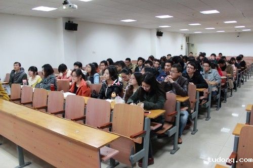 在座同学认真听讲座并记录