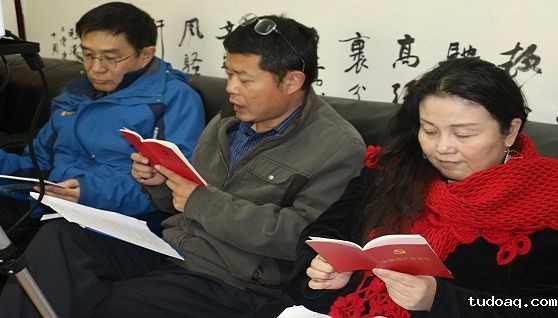 然后诵读党章,全体党员逐条逐句学习党章第二章关于党的组织制度的部分内容。