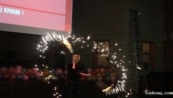 本场晚会的另一个高潮出现在冷焰火表演中。法硕中心的何小良同学将焰火和双节棍完美的融合,绚烂的焰火在舞台上绽放、飞舞,犹如流星飞舞。接下来,来自法硕中心的《咋啦爸爸集体舞》表演也将晚会带入了又一个小高潮。