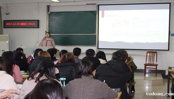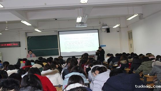 接下来丁远琼谈到王国维先生在他的《人间词话》里描述了关于求学的三种境界时说,第一种境界是读书有“要‘望尽天涯路’那样志存高远的追求,有耐得住‘昨夜西风凋碧树’的清冷和‘独上高楼’的寂寞。第二种境界是即使“衣带渐宽”也“终不悔”,“人憔悴”也心甘情愿。读书需要坚持不懈、水滴石穿。第三种境界是学有所悟,用有所得,要在学习和实践中“众里寻他千百度”,最终“蓦然回首”,在“灯火阑珊处”领悟真谛。