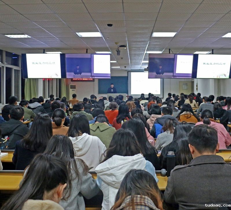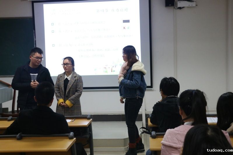 第二场讲座于2018年11月22日晚7点在文添楼501教室举行。讲座伊始,余金聪老师以一个“摸鼻子摸耳朵”小游戏引入主题,向在坐同学发问“我们面对的压力有哪些”。同学们表示,在校的压力主要来自于求职、学业、情感等方面。对此,余老师分别从压力的概念、压力产生的原因、压力的影响、压力的应对四个方面予以解读。余金聪老师的讲课非常生动,语言幽默风趣,穿插在讲座过程中的小测试、小短剧、提问等互动使整场讲座的气氛变得很热烈,现场的同学们反馈积极。最后,余金聪老师特别提醒大家注意:一定要不断尝试,不设限,不比较,不放弃,希望永远都在!