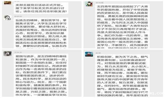 (通讯员汪丽纯 摄影 汪丽纯)法硕1701班党支部于2019年5月9日晚上8点在党支部微信群召开了“弘扬五四精神 建功立业新时代”的主题党日活动,活动由党支部书记李腾主持。