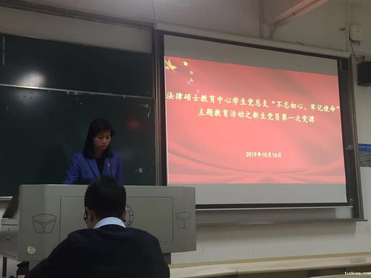 (通讯员 刘翔 燕明莉)为了贯彻落实党的十九大在全党开展“不忘初心、牢记使命”主题教育的决定,luck18平台学生党总支于2019年10月16日晚上6点30分在文添楼102教室举办了以““不忘初心、牢记使命””为主题的新生党员第一次党课暨调研座谈会。法硕中心学生党总支易育书记、办公室主任李杨老师、辅导员刘翔老师、法硕1803和1804班党支部委员以及2019级全体党员参加了本次活动,活动由易育书记主持。