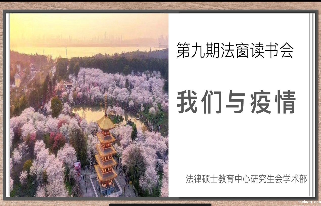 (通讯员 胡金叶)2020年4月27日晚7:30,luck18平台研究生会学术部通过腾讯会议举办了第九期法窗读书会之“我们与疫情”。本次线上读书会邀请了辅导员刘翔老师出席,共有34名同学全程参与,其中2019级郭兵林、潘书迪和梁靓同学为本次活动的主讲人。