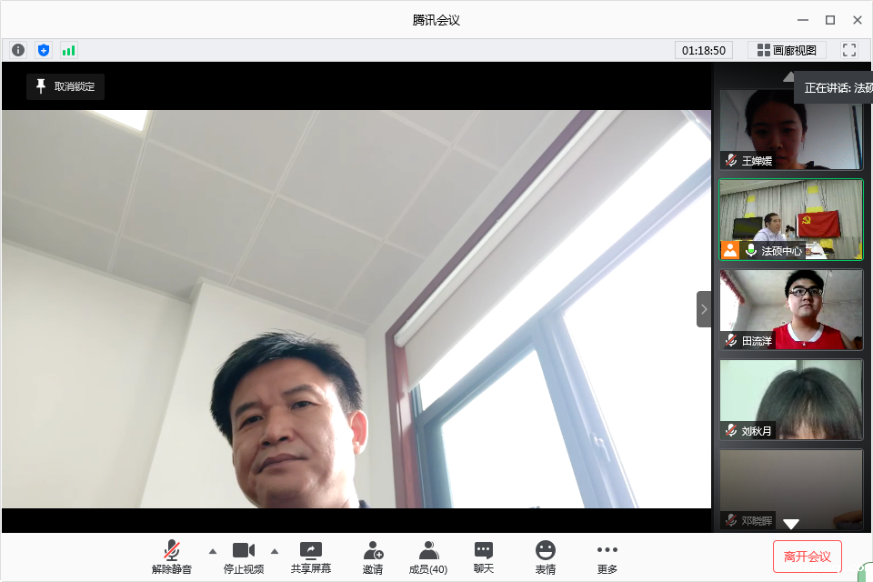 陈金川同志谈到,近年来,法硕中心学生党总支党建工作成果显著,于2019年底入选全国第二批高校党建工作样板党支部,希望在今后的工作中能够继续发扬光大,再创佳绩。希望法硕同学在家学习顺利,早日成长成才。