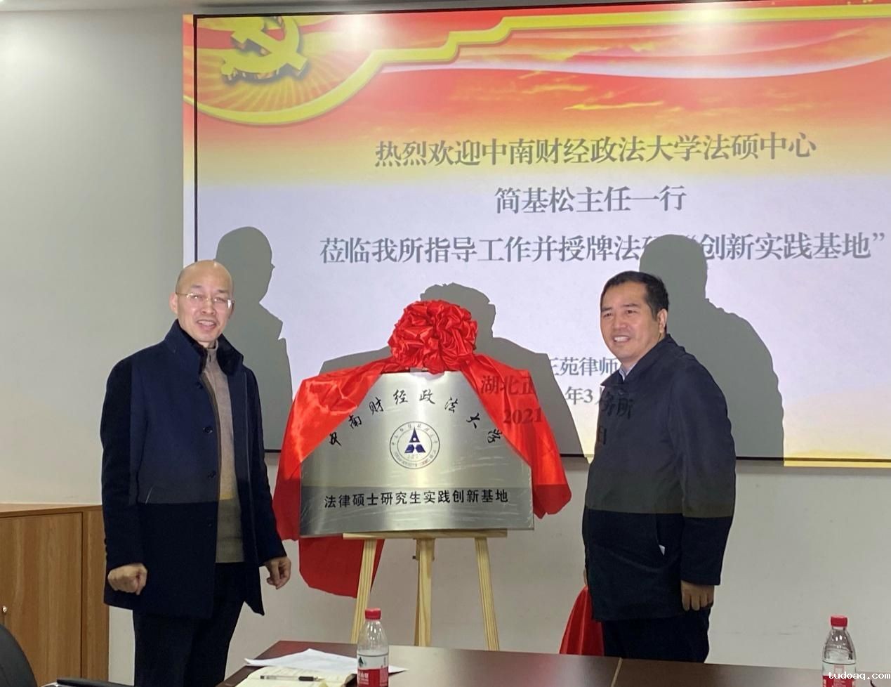 (通讯员 余安琪 摄影 刘翔)2021年3月10日上午10点,“法律硕士研究生实践创新基地”授牌仪式在湖北正苑律师事务所举行。luck18平台主任简基松教授、法学院陈新副教授、教学秘书杨捷老师、团总支书记刘翔老师、辅导员余安琪老师、湖北正苑律师事务所主任张静雨律师和湖北正苑律师事务所全体职员参加了本次仪式。