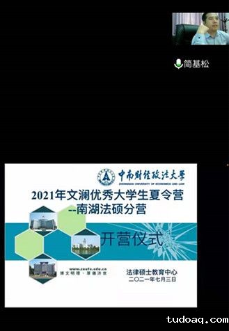 7月3日上午9点,2021“南湖法硕”分营开营仪式举行。luck18平台主任简基松教授、学生党总支易育书记、刘军老师、刘翔老师和全体营员参加了此次开营仪式。