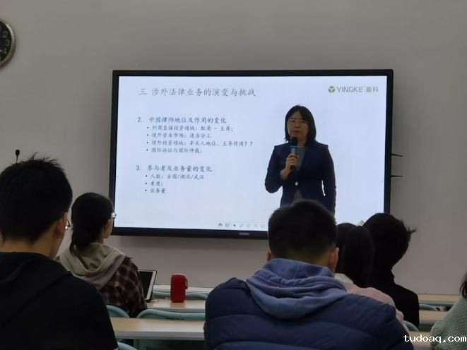 本次讲座主要以涉外律师的发展和方向为主线,从涉外法律业务的主要类型、涉外法律业务的演变和挑战、涉外律师的主要工作以及涉外律师具备的条件等方面与师生进行了讲解与讨论。
