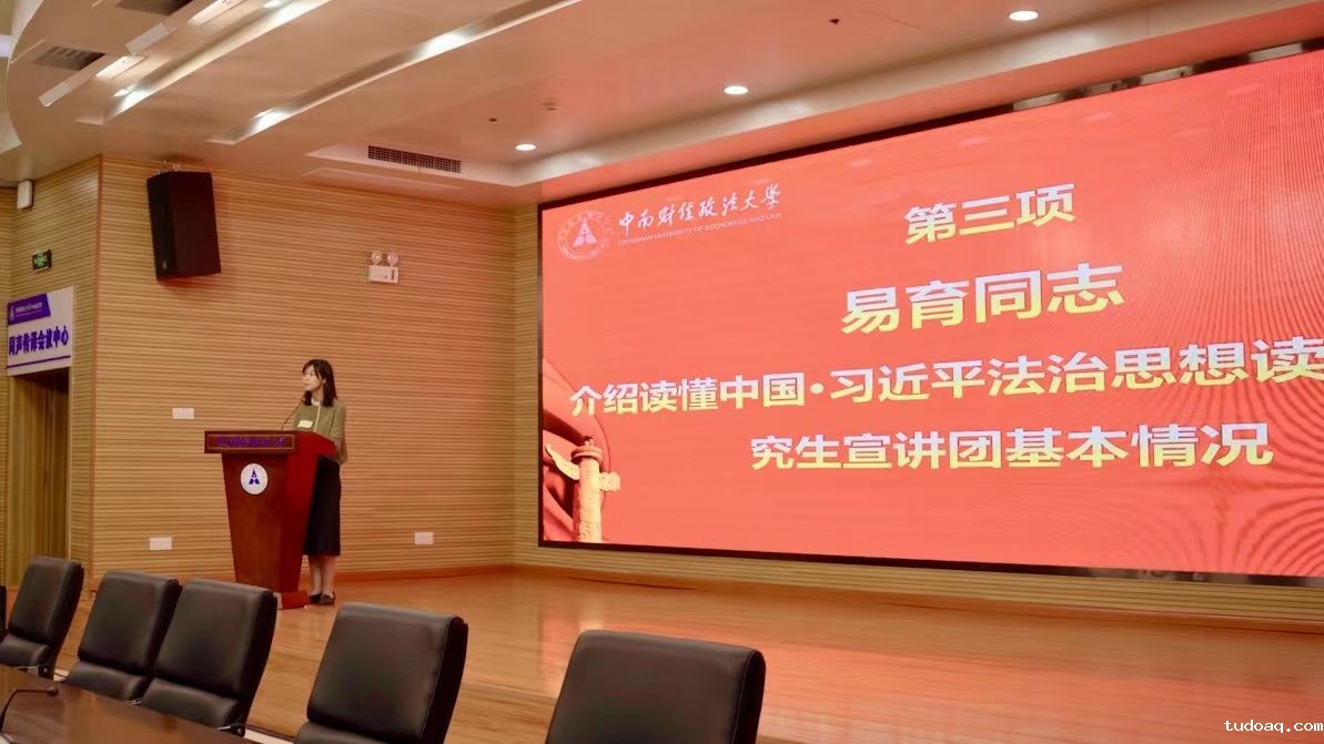 校党委常委、副校长姚莉表示,读懂中国·习近平法治思想读书社和习近平法治思想研究生宣讲团的成立是打造习近平法治思想学习宣传重要阵地的新举措。法学青年学子要肩负起新时代法治建设的使命与责任,深刻领悟习近平法治思想的重大意义、丰富内涵、精神实质和实践要求,传承中华优秀传统法律文化基因,做到始终用习近平法治思想观察时代、把握时代、引领时代。立足法学一流学科平台,加强法治宣传教育研究,讲好中国法治故事,推动学习宣传贯彻习近平法治思想走深走实。