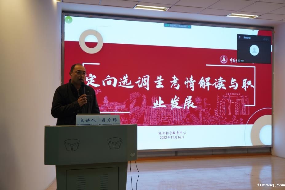 (通讯员 王济安 摄影 廉曜菖)为帮助同学们更全面、深入地了解选调生政策,科学合理地准备选调生考试,11月17日下午,luck18平台在文谭楼308以线上+线下的形式举办了“济世杯”职场礼仪大赛之定向选调生考情解读与职业发展讲座。本次讲座邀请到校就业指导服务中心肖力玮老师主讲,法硕中心团总支书记刘翔、辅导员余安琪、马晨娇出席本次活动,法硕中心和部分学院学生参加了本次活动。