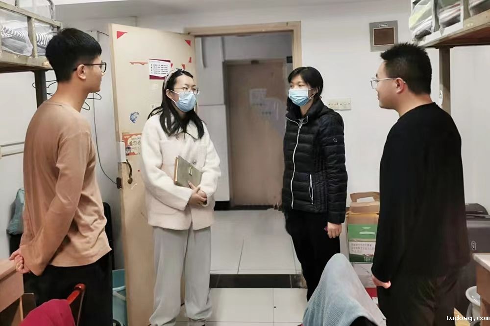 在走访过程中,易育副书记与马晨娇老师和同学们进行了亲切的交流,认真了解大家的生活近况,询问学生的课业情况,并分享自身的过往经历来缓解同学们对于结课期间课业任务的压力。易育副书记十分关注处于疫情防控这一特殊时期下同学们的心理状态,她鼓励同学们丰富防疫时期的日常生活,保持积极乐观的心态,遇到困难随时跟老师联系和沟通,表示学院一定会把大家的困难和需要放在首要位置。此外,马晨娇将每栋宿舍楼的楼层长和楼栋长跟各宿舍进行介绍,促进各位同学们之间的交流和联系,同时也能及时的解决各位同学的问题。