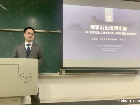 吴律师在授课过程中,不仅对案情和知识要点进行了精彩讲解,而且无私地分享了大量商事诉讼律师在执业过程中的实务经验,可谓是干货满满。吴律师希望引导同学们站在商事诉讼律师的角度进行思考,尽可能理解律师分析与处理案件的思路。吴律师还结合办案经验,强调了商事诉讼业务中具体工作时效性强的特点,需要在较短时间内为客户的需求提出解决方案,按照法官的要求及时提供或补充材料。诉讼业务当然首先要尽量解决眼前问题,但也要勤于总结办案经验,从而深化对相关理论问题的认识。