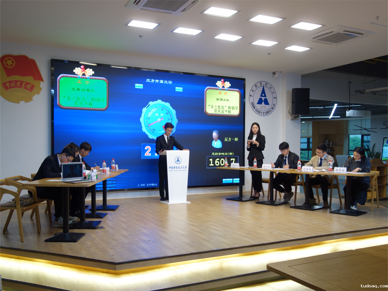 本次复赛设置两场比赛,由来自3个学院的16位辩手组成4支代表队围绕“君子论迹不论心/君子论心不论迹”、“女士优先的倡导是在平权/反平权”两道辩题展开辩论。
