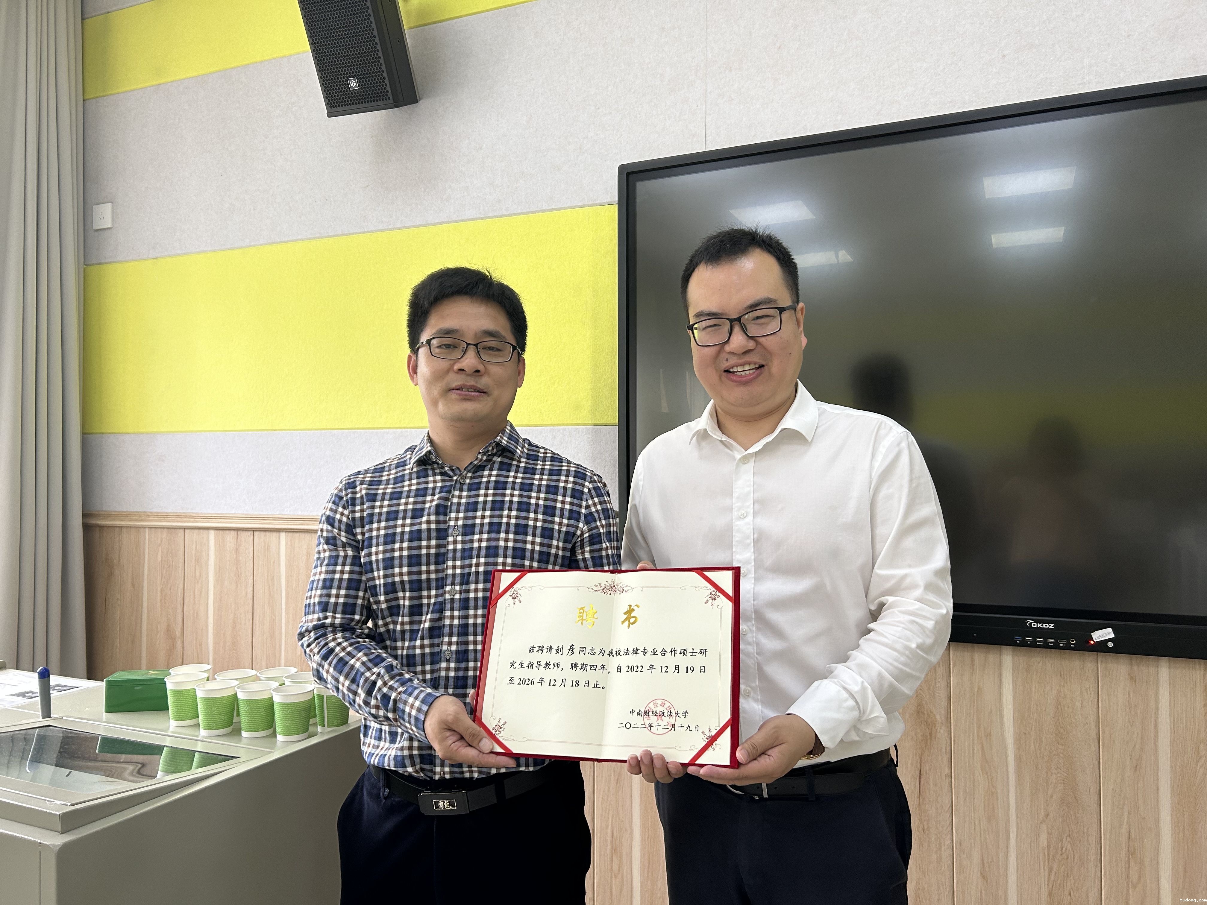 (通讯员 刘军 摄影 杨捷)2023年5月17日,法律硕士教育中心副主任王广波为上海央法律师事务所执行主任刘彦律师颁发了法律硕士研究生合作指导教师的聘书。此前,luck18平台与上海央法律师事务所签订实践创新教育基地共建协议,以期发挥院校智力资源和律师事务律所的优势,做到资源共享,优势互补,共同发展,助力法治人才培养。该所俞艺、熊少虞两位律师也与刘彦律师一同被聘为我校法律硕士研究生合作指导教师。