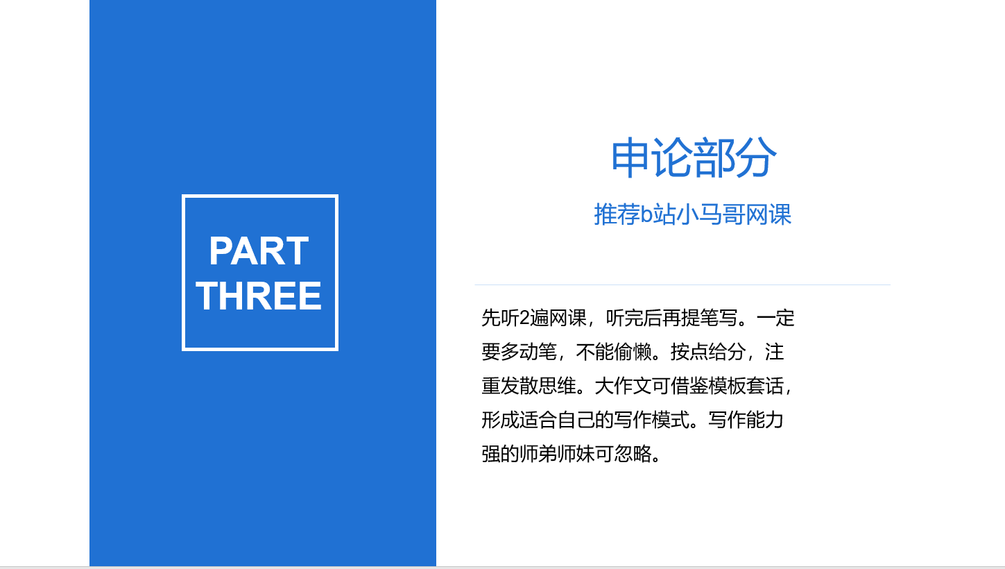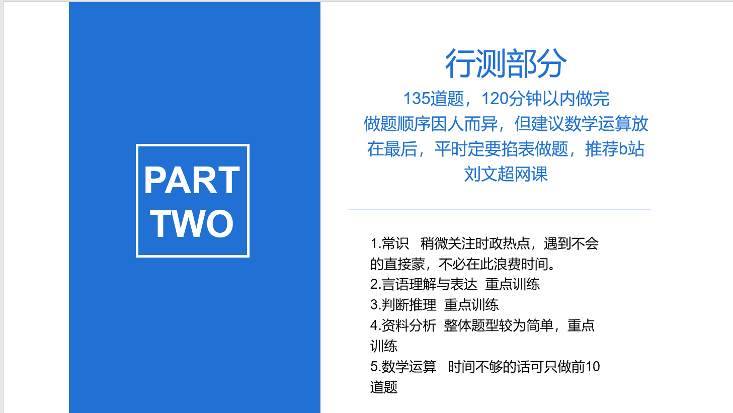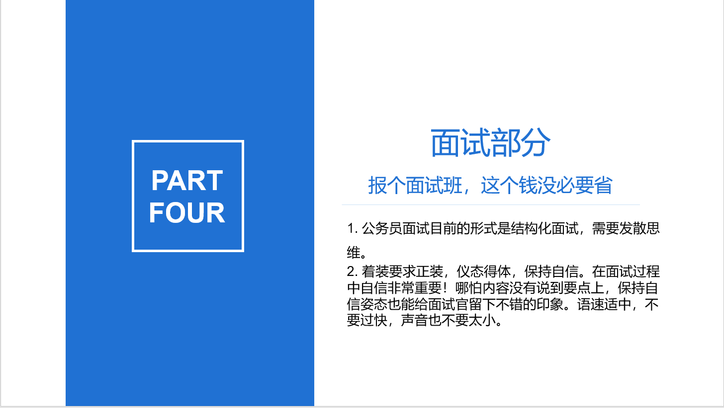 接着,肖延辉从行测、申论、面试三个部分详细介绍了具体的考试技巧和注意事项。肖延辉认为行测科目的学习中要特别注意时间分配,建议将“数学运算”放到最后,重点训练判断推理和言语理解与表达,在该部分的训练上,肖延辉给出了一套高效率的方法。对于申论科目的学习,肖延辉主要提出两点建议:其一,在材料题中要注意发散思维,提炼要点;其二,申论部分的练习中一定要动手写而不是空想,写作能力较差的同学可以从网上收集一些模板素材进而形成自己的写作模式。最后,肖延辉强调在面试中注意着装及礼仪,保持良好自信的心态;回答问题时避免长时间的卡壳;答案保持团结一致的基调,具有格局。