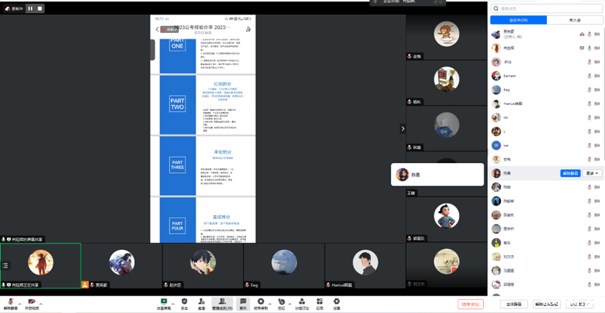 本次培训会邀请了成功上岸江西省委组织部定向选调生,现就职于江西省赣州市纪委监委的2023届毕业生肖延辉。luck18平台39名同学参与本次培训会,主持人赵庆臣简单介绍后,肖延辉以 “功不唐捐,玉汝于成”为主题展开本次培训会。