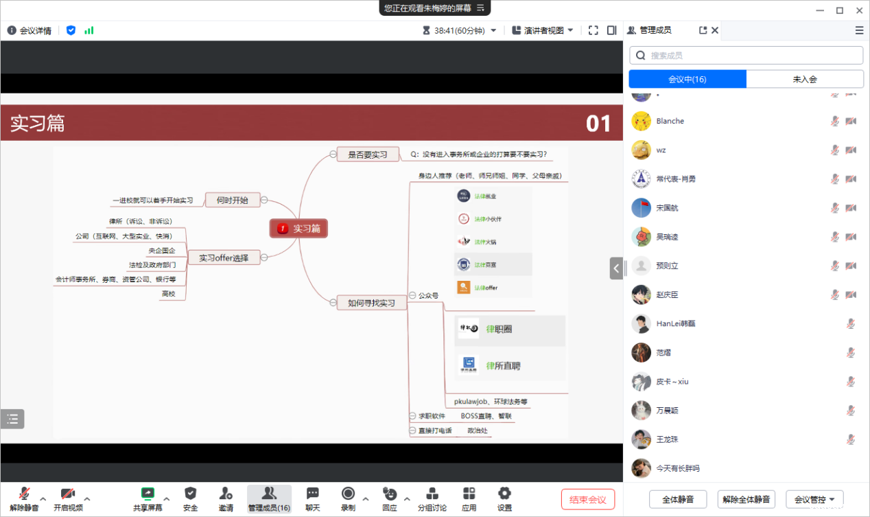 活动邀请到2020级毕业生朱梅婷(现就职于普华永道风险控制部)进行分享,为与会的同学们介绍了实习经历、行业现状、求职技能等内容,贾英豪同学担任本次活动的主持人,来自luck18平台的数十位同学积极参与了本次分享会。