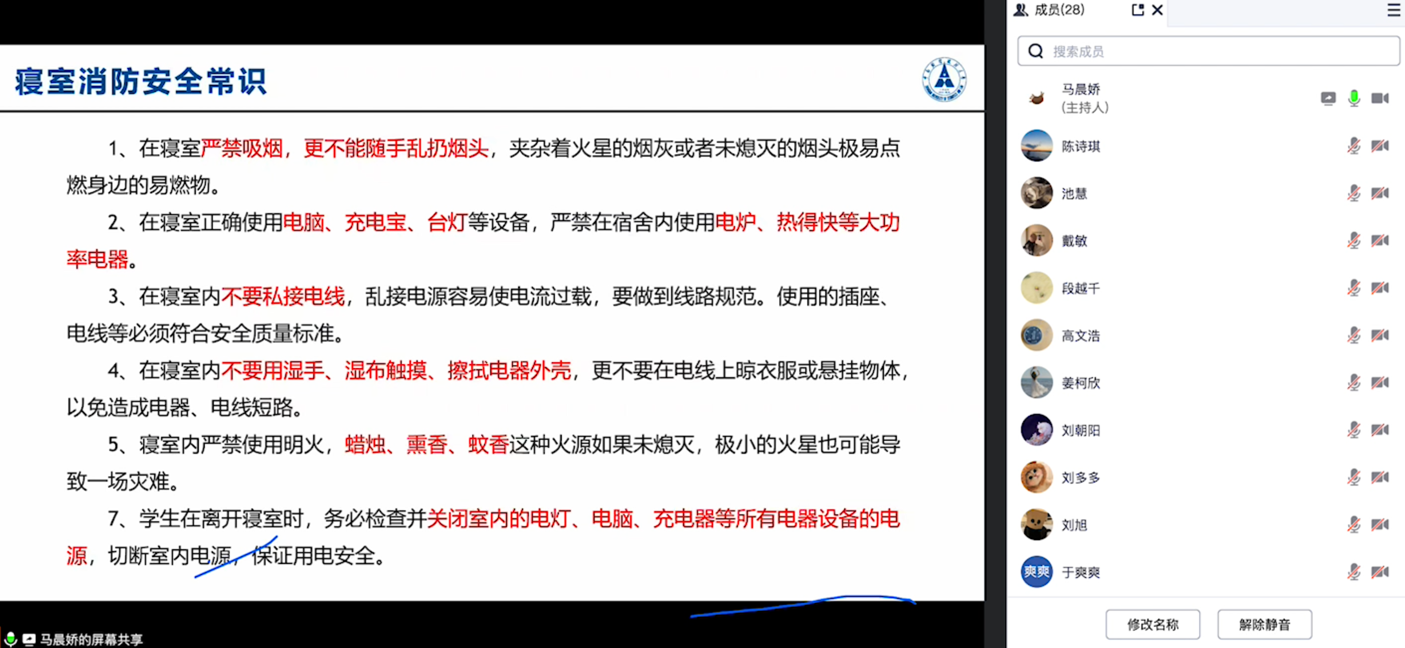 走访中,luck18平台各位辅导员就学生离校时间、假期安排等问题一一询问,殷切叮嘱同学们避免使用大功率电器、严禁私拉乱接电线,要求学生做好离校安全自查,注意防寒防冻,保护个人财产安全。同时,开展线上宿舍安全教育主题班会,讲解宿舍防火安全知识,强调杜绝消防安全隐患。