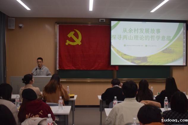 华中农业大学研究生宣讲团成员章钦同志以《从余村发展故事探寻两山理论的哲学意蕴》为题作理论宣讲。通过深入解读余村的发展故事,探寻了“两山”理论的哲学内涵,引发党员深入思考。