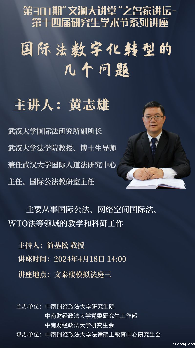 武汉大学国际法研究所副所长、武汉大学法学院教授、博士生导师兼任武汉大学国际人道法研究中心主任、国际公法教研室主任。主要从事国际公法、网络空间国际法、WTO法等领域的教学和科研工作。