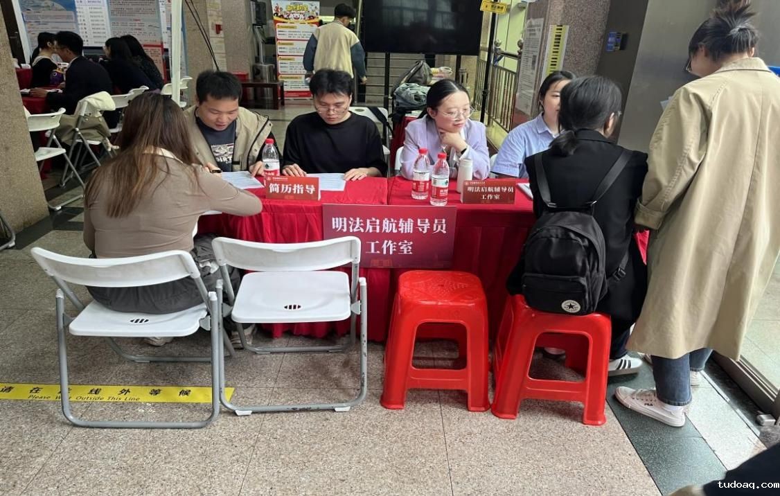 luck18平台“明法启航”辅导员工作室在招聘会上设置了“简历指导+就业咨询”的一站式就业服务窗口,帮助学生提高求职成功率,为学生高质量就业保驾护航。