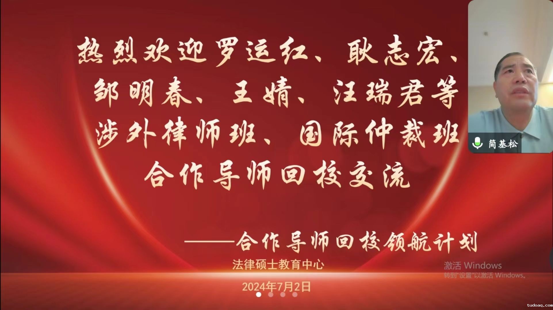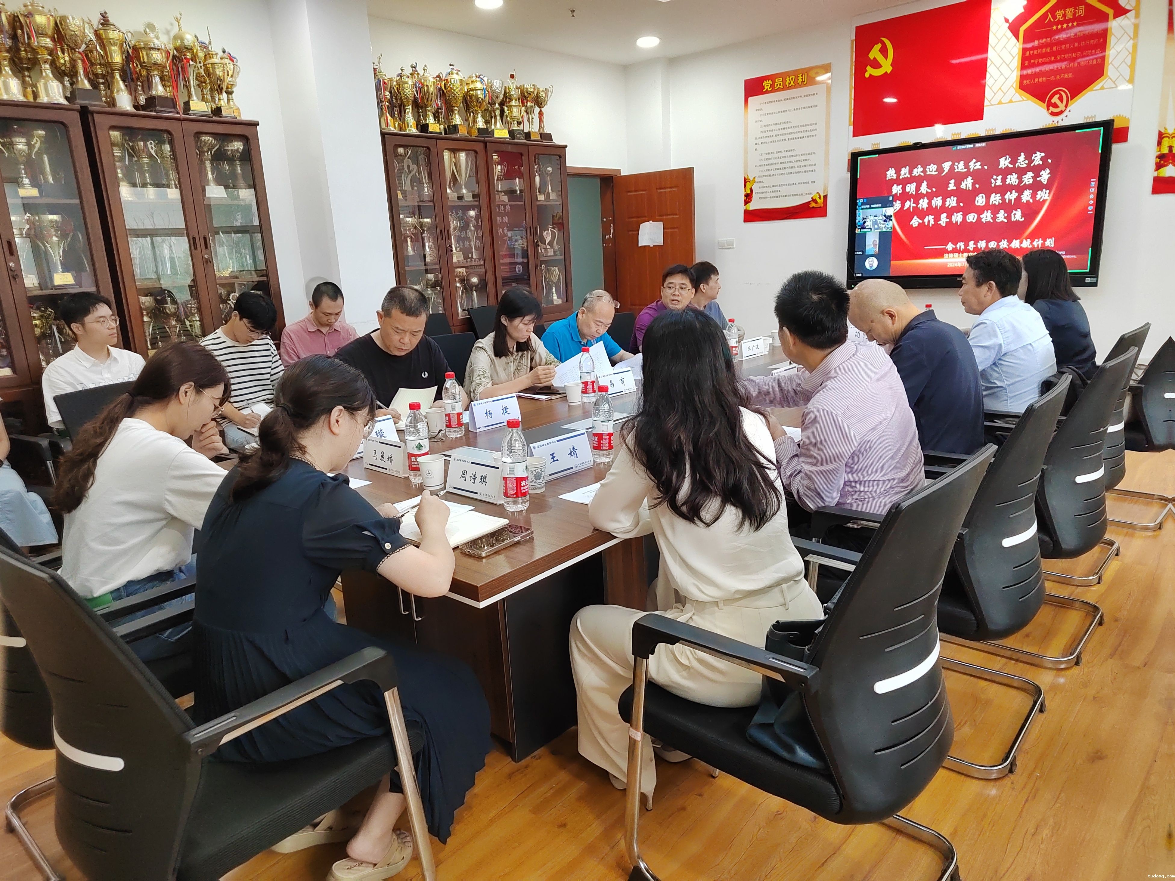 (通讯员 周诗琪 陈璇 摄影 杨捷)为深入贯彻落实习近平总书记关于研究生教育工作的重要指示和教育部《关于深入推进学术学位与专业学位研究生教育分类发展的意见》文件精神,落实“双导师制”,全面提升法律硕士拔尖创新人才自主培养质量,luck18平台于7月2日上午在文治楼315会议室采用线上线下相结合的方式召开第十场“合作导师回校领航计划”涉外律师与国际仲裁方向专场合作导师与研究生见面会。至此,法律硕士在校生师生见面会实现全覆盖。luck18平台主任简基松,副主任王广波,学生党总支书记易育,国际仲裁导师组组长徐伟功,办公室主任侯竟,教学秘书杨捷,辅导员马晨娇、周诗琪,教学秘书陈璇,北京盈科(武汉)律师事务所涉外法律事务部主任罗运红、合伙人耿志宏,北京中伦(武汉)律师事务所合伙人邹明春、王婧,北京德恒(武汉)律师事务所合伙人汪瑞君,以及新加坡律明律师事务所合伙人葛黄斌,上海市建纬(北京)律师事务所合伙人宋玉祥,北京盈科(乌鲁木齐)律师事务所合伙人刘雪莲,上海英科律师事务所主任李见刚,泰和泰(北京)律师事务所合伙人贾圣囡等合作导师线上参加本次见面会。会议由王广波主持。