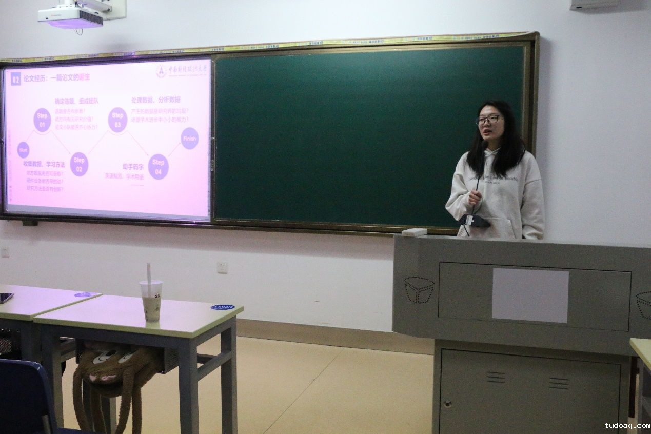 2024级研究生李贝宁详细讲述了自己的撰写论文经验,她从确定选题、处理分析数据到最终着手撰写论文的完整经历出发,向同学们分享了自己在学术道路上的经验和建议,例如如何进行团队分工,如何查找参考文献等等。她强调,每一个数据、每一个案例都要经过反复核实,确保其真实性和可靠性,这不仅是对学术的尊重,更是对自己的负责。