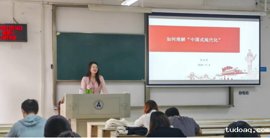 朱亚男老师以“理解中国式现代化”为题,从习近平新时代中国特色社会主义思想产生的时代背景、科学体系、实践要求的三个部分展开讲述,告诫新时代青年要从习近平新时代中国特色社会主义思想中汲取智慧和力量,积极投身实践,努力创造出经得起历史和人民检验的新功。