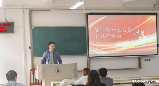 张申鹏老师以“如何做一名合格的共产党员”为题,讲述了疫情期间党员们奋勇争先、共克时艰的感人事例,告诫大家要树立正确的入党动机,把人生理想融入党和人民事业之中,成为一名有党性、有奉献精神的共产党员。