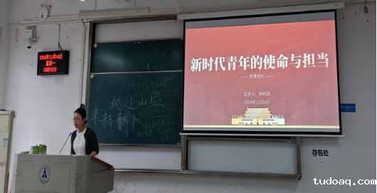 张秋蕊老师以“新时代青年的使命与担当”为题,阐述了青年在国家发展和社会进步中的重要角色。她鼓励广大青年积极投身于国家建设,勇于创新,敢于担当,坚定听党话、跟党走的理想信念,永葆肯吃苦、不怕苦的奋斗精神。