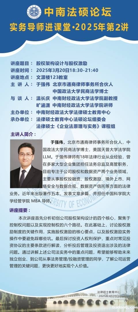 新利18(中国)体育 实务导师进课堂 · 2025年第2讲:股权架构设计与股权激励